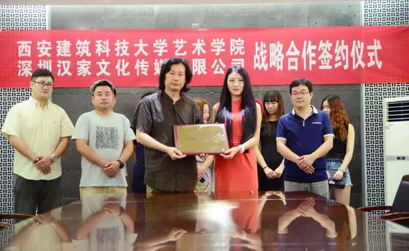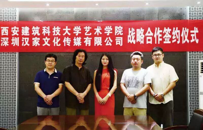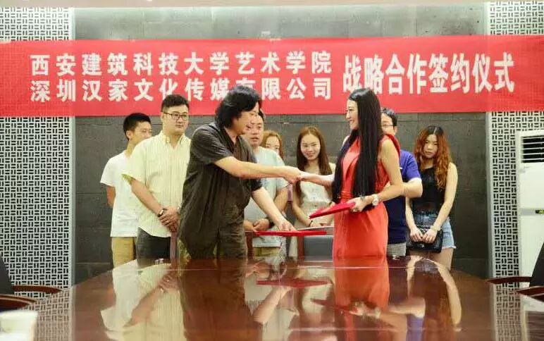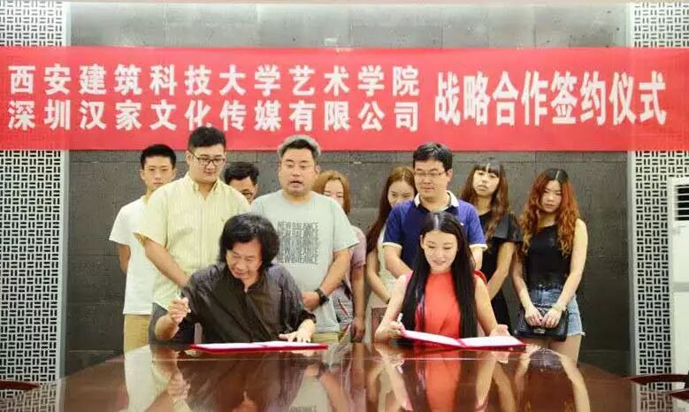 昨日,深圳汉家文化传媒有限公司与西安建筑科技大学艺术学院在学院行政大楼会议室举行了战略合作签约仪式。汉家传媒典藏馆馆长梅婵娟、西安建筑科技大学艺术学院院长蔺宝钢作为双方代表进行了现场签约。